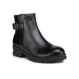 women's Black boot with zipper closure and buckle
