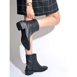Black Pebble Grain Leather Ankle Boots Boots For Women