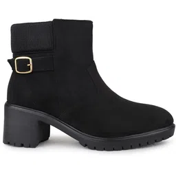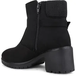 Womens Black Casual Solid Round Toe Boots Boots For Women