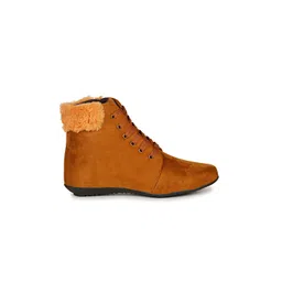 Ishransh Women Latest Trendy Round-Toe Flat Winter Boots