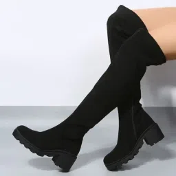 Fashion Over Knee High Womens Boots Platform Block Heel Pull On Heels Stylish Solid Heels Long Boots For Womens & Girls