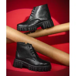Rugged Combat Boots with Bold Lug Sole and Lace-Up Style Boots For Women