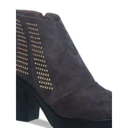 Khadims Women Grey Solid Heeled Boots