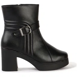 Women’s Tall Black Belted Boots | High-Rise Block Heel Elegance Boots For Women