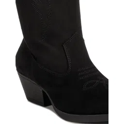 London Rag Women Pointed Top Mid Top Embroidered Block-Heeled Cowboy Boots