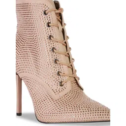 London Rag Women Rhinestones Embellished Pointed-Heeled Stiletto Boots