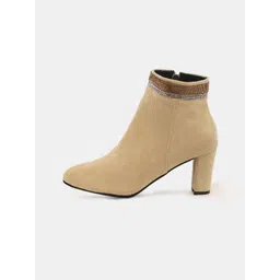 LULU & SKY Women Embellished Pointed Toe Block Heeled Suede Boots