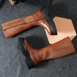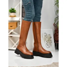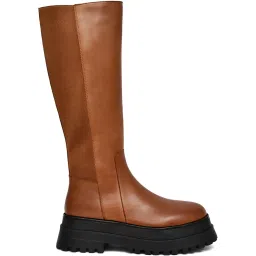 amazon.innico neriniWomen's Genuine Leather Tan Knee-High Platform Boots with Chunky Lug Sole and Stretch Panel ₹1,909