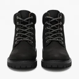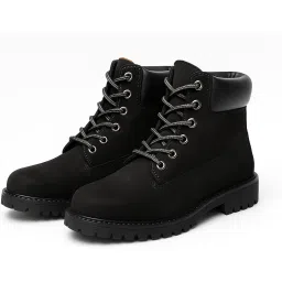 Black Boots for Women, Pure Leather, Lace-Up Style with Rugged Lug Sole and Padded Collar, Ankle Length Boots