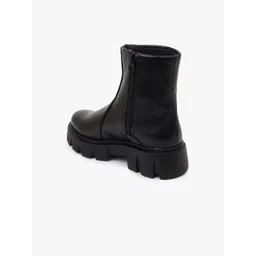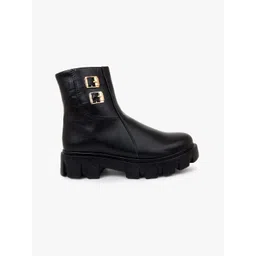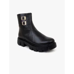 The Roadster Lifestyle Co. Women Black Heeled Buckled Mid-Top Chunky Boots