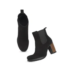 The Roadster Lifestyle Co. Women Black Solid Suede Heeled Boots