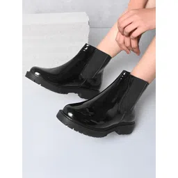 San Frissco Women Glossy Block-Heeled Chelsea Boots