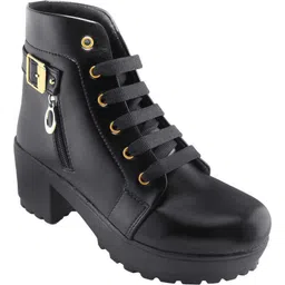 amazon.inevoltarWomen's Embellished Block Heel Boots | Luxury Synthetic Leather Booties with Zip and Buckle Detailing ₹569