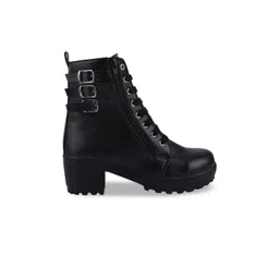 Shoetopia Women Black Solid Lace-Ups Boots