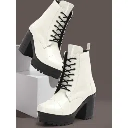 amazon.instrasse parisAmazing Design Women's Ankle Length Block Heel Black Stylish And Fashionable Boots Lace up & Side Zip | Stylish Latest & Trendy Boots for Women ₹934