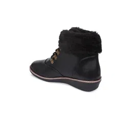 VALIOSAA Women Black Solid Wedged Heel Boot With Fur