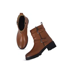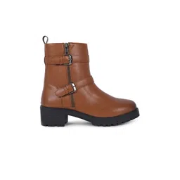 yoho Women Mid Top Platform Heel Regular Boots With Buckle Detail