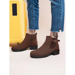 yoho Women Round Toe Block Heel Chelsea Boots