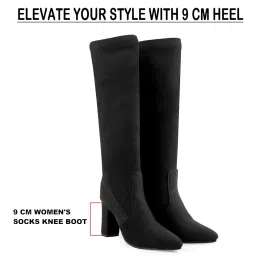 amazon.inyuvrato baxiWomen's Faux Leather Material Black Casual Formal Slipon Sock Fit Knee-Length Boots With 9 Cm Block High Heel Height ₹2,999