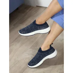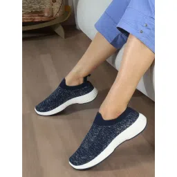 Carlton London Women's Slip On Navy Color Woven Desing Comfortable Sneakers