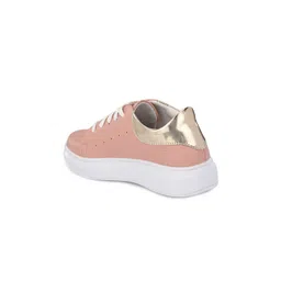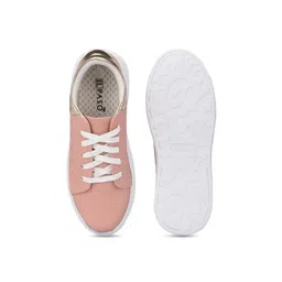El Paso Women Peach Solid Synthetic Leather Lace-Up Casual Sneakers