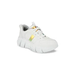 El Paso Women White Colourblocked Faux Leather Lace Up Sneakers
