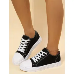 Stylish Casual Sneakers for Women | Lightweight Canvas Shoes with White Toe & Lace-Up Design | Everyday Comfort Walking Sneakers