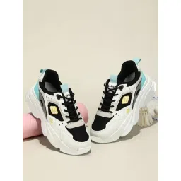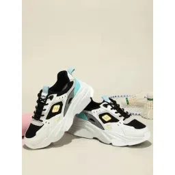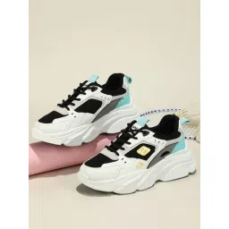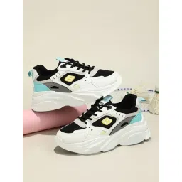 Shoetopia Colorblock Breathable Black Chunky Sneakers for Women