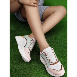Shozie Women White & Green Colourblocked Lace Ups Synthetic Sneakers