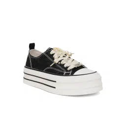 The White Pole Women's Black Casual Sneakers